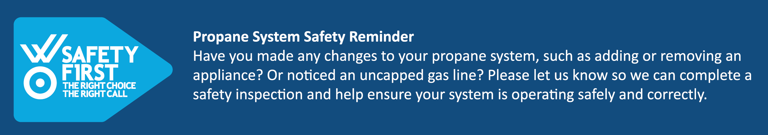 ❑ A trained service technician must repair the leak, turn on the propane, check all propane appliances and re-light pilots.